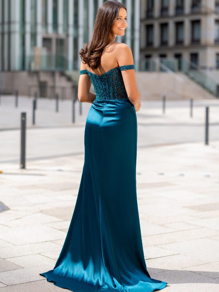 Abito lungo da cerimonia in tessuto raso e pizzo