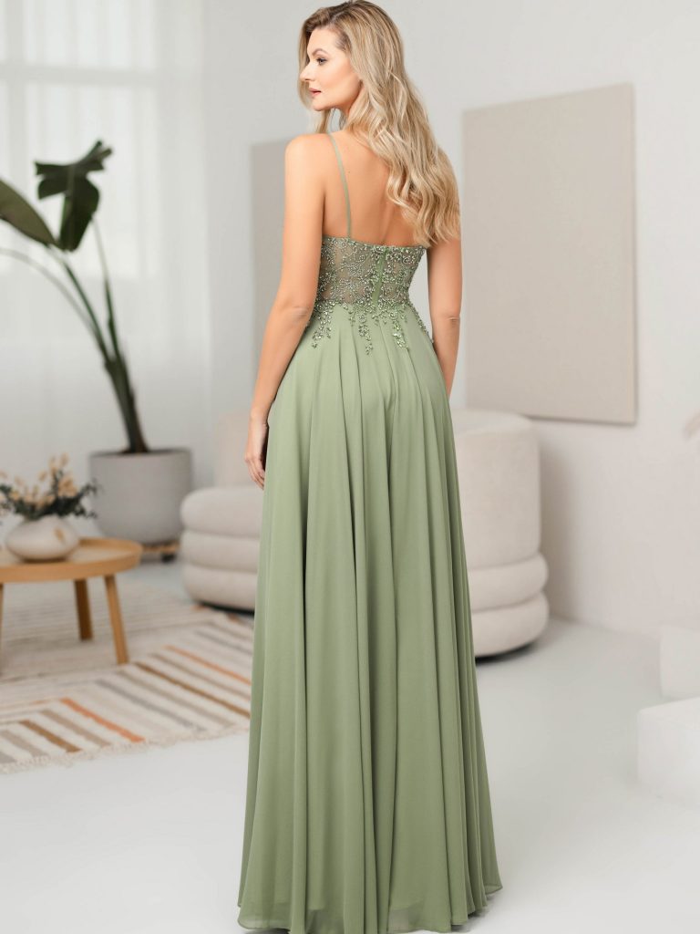 Abito lungo da cerimonia in tessuto georgette e pizzo