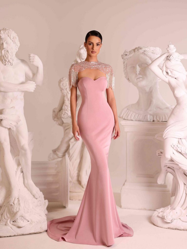 Abito lungo da cerimonia in tessuto satin