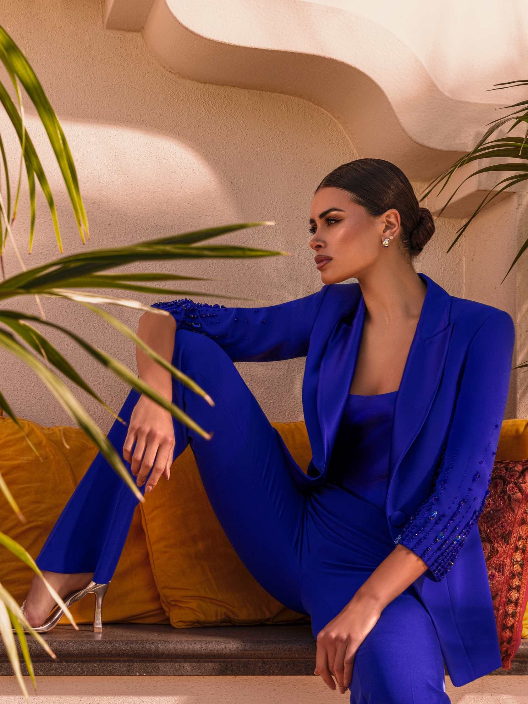 Completo pantalone da cerimonia in tessuto crepe e ricamo