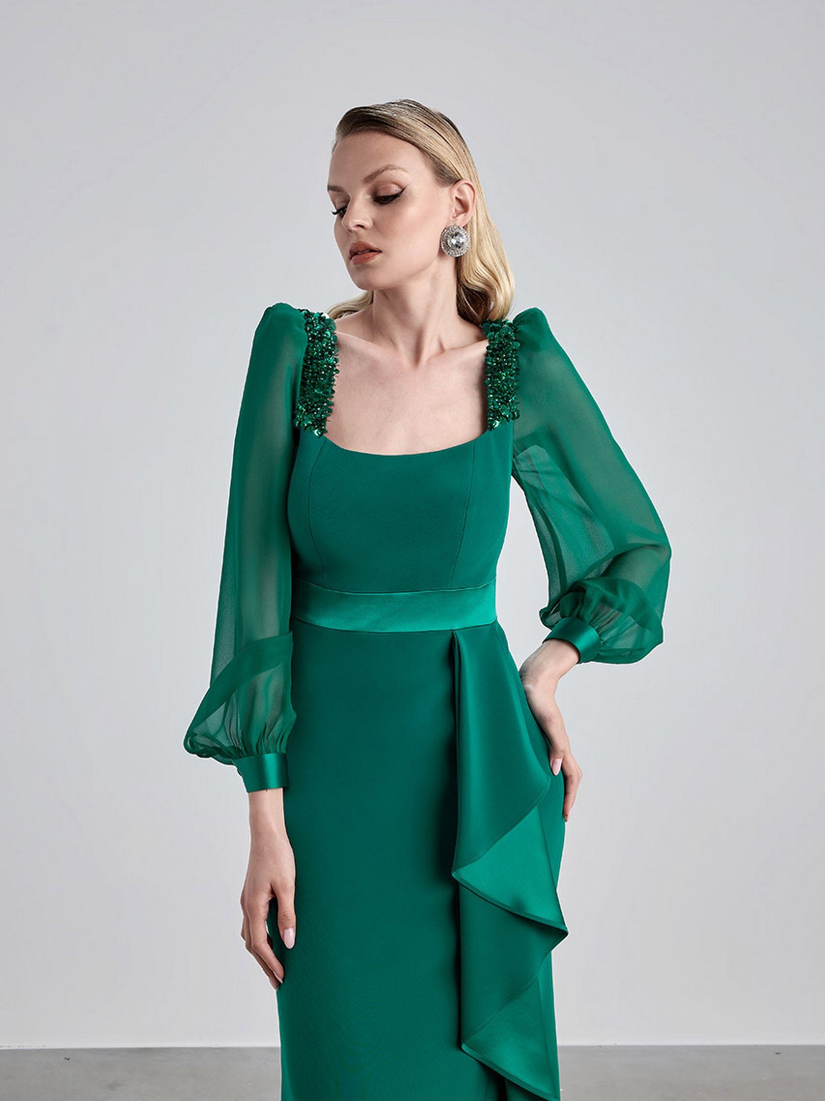 Abito lungo da cerimonia in tessuto georgette