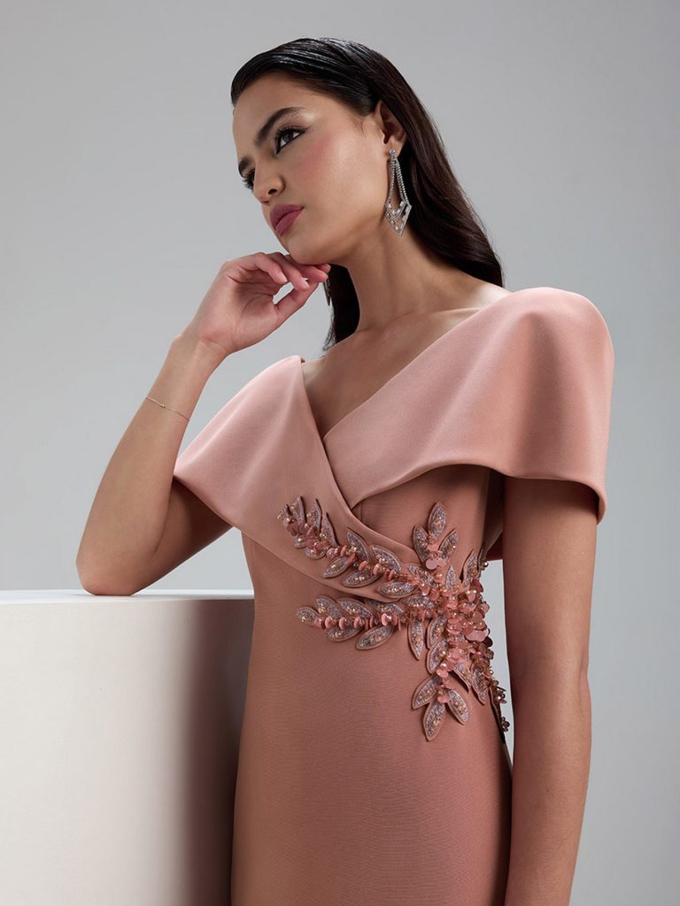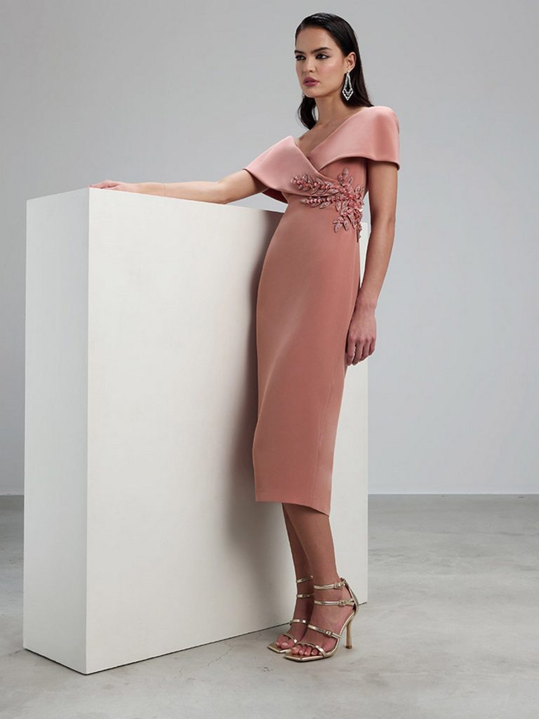 Abito corto da cerimonia in tessuto crepe e ricamo
