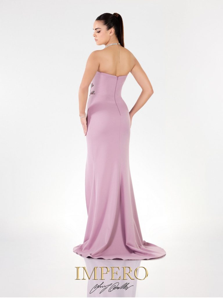 Abito lungo da cerimonia in tessuto crepe e ricamo