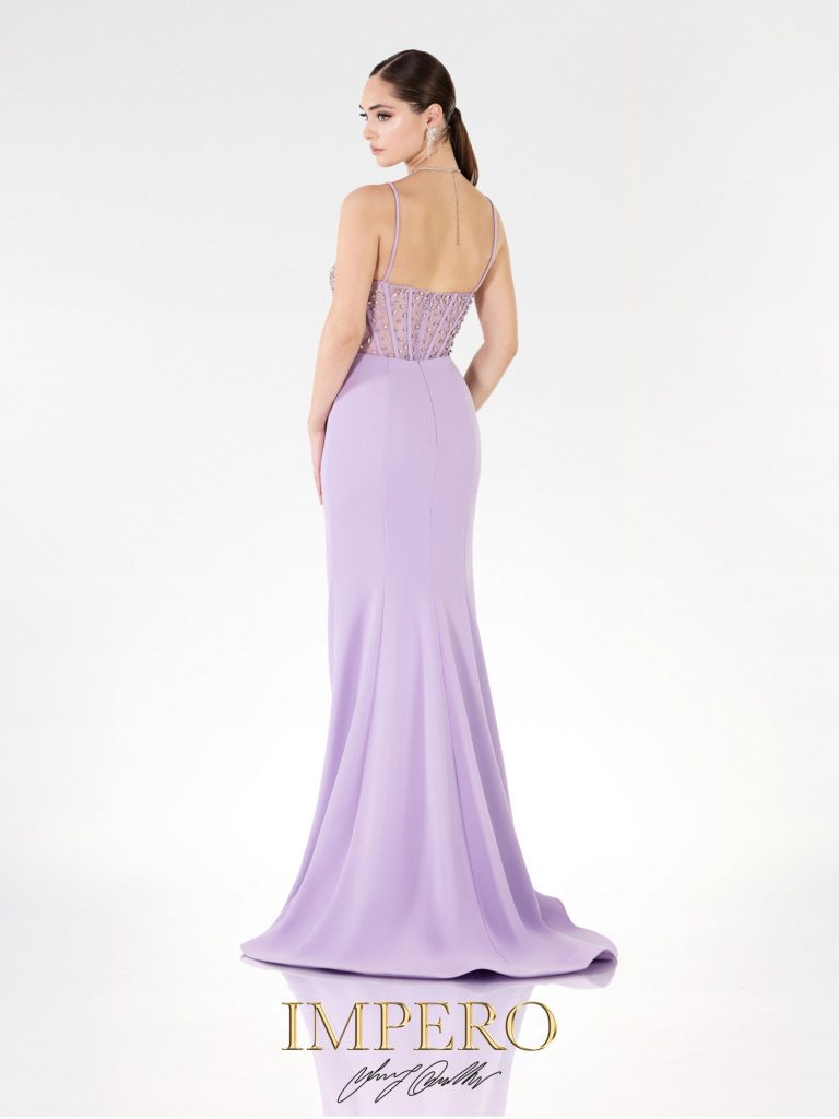 Abito lungo da cerimonia in tessuto crepe e pizzo