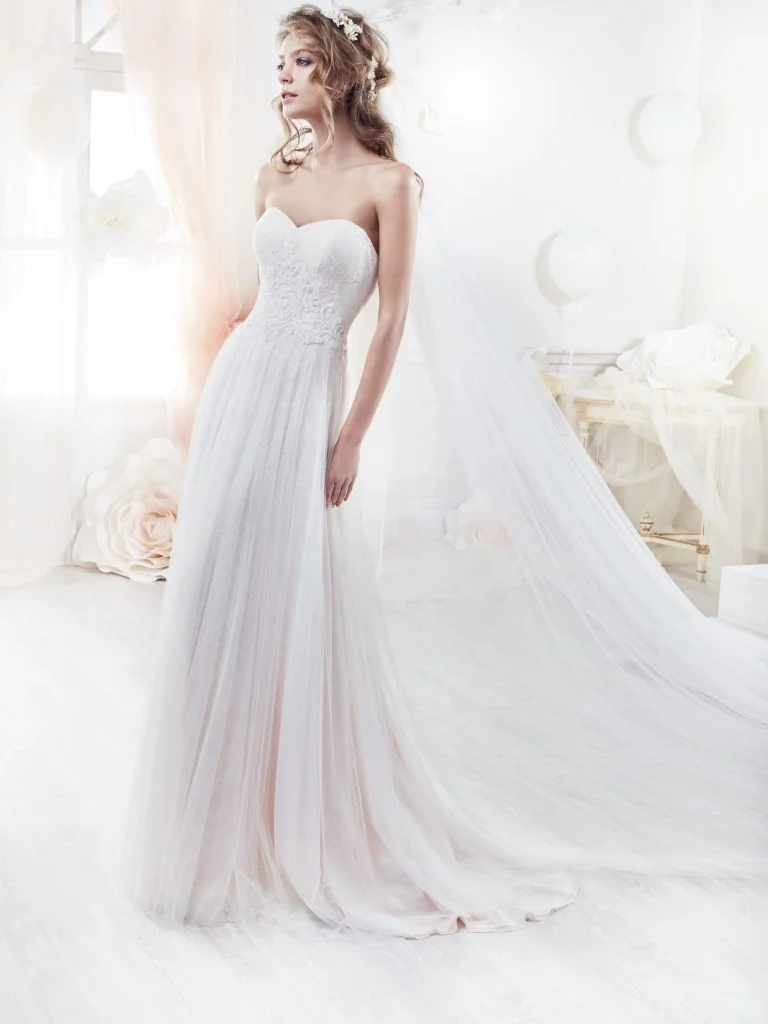 Abito da sposa decolte, stile scivolato, scollatura spalle aperta e tessuto organza