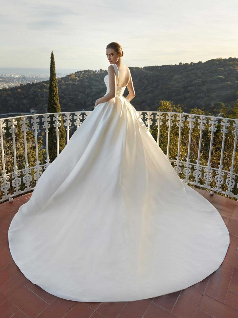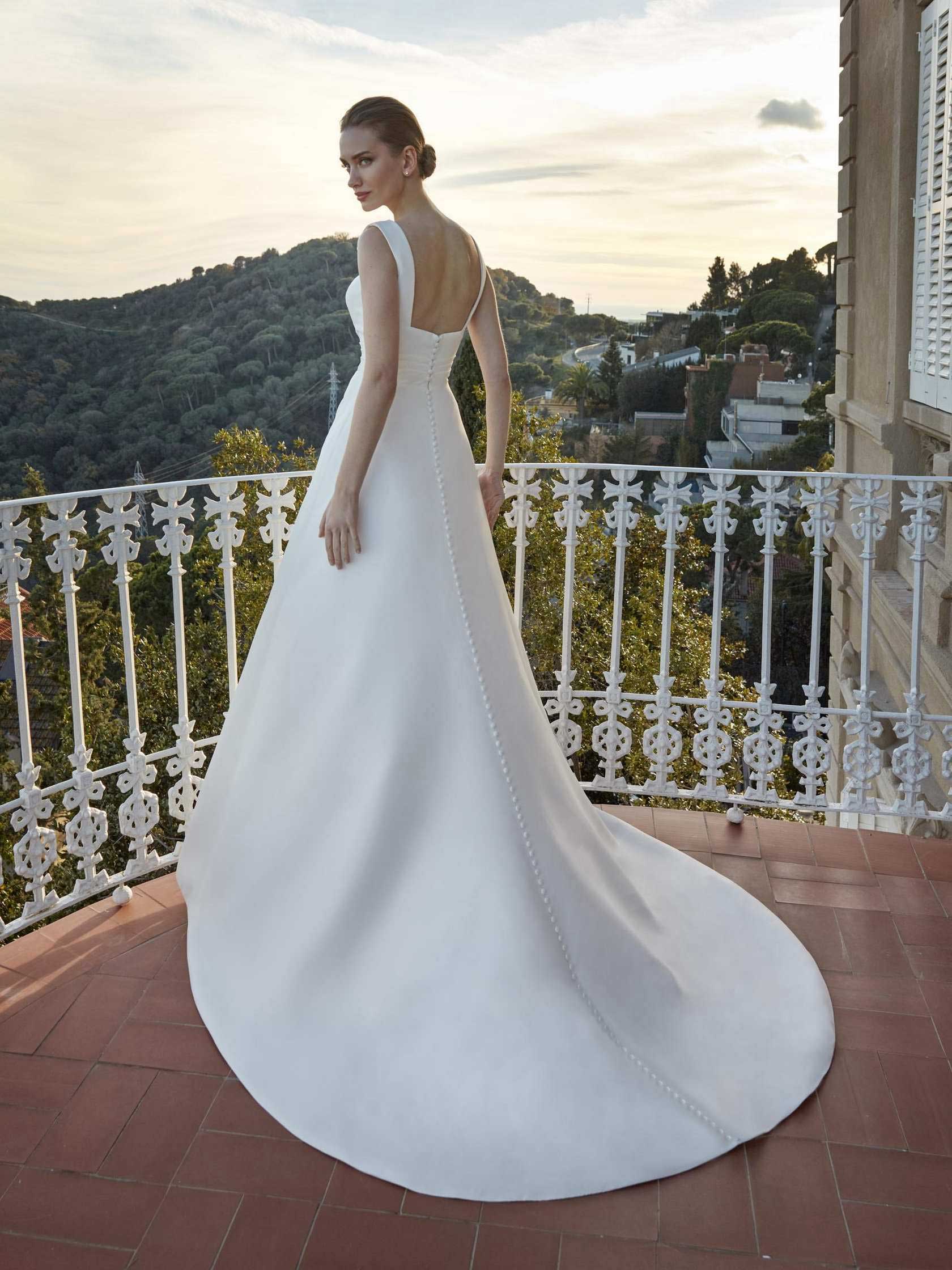 Abito da sposa manica canotta, stile semplice, scollatura spalle aperta e tessuto mikado