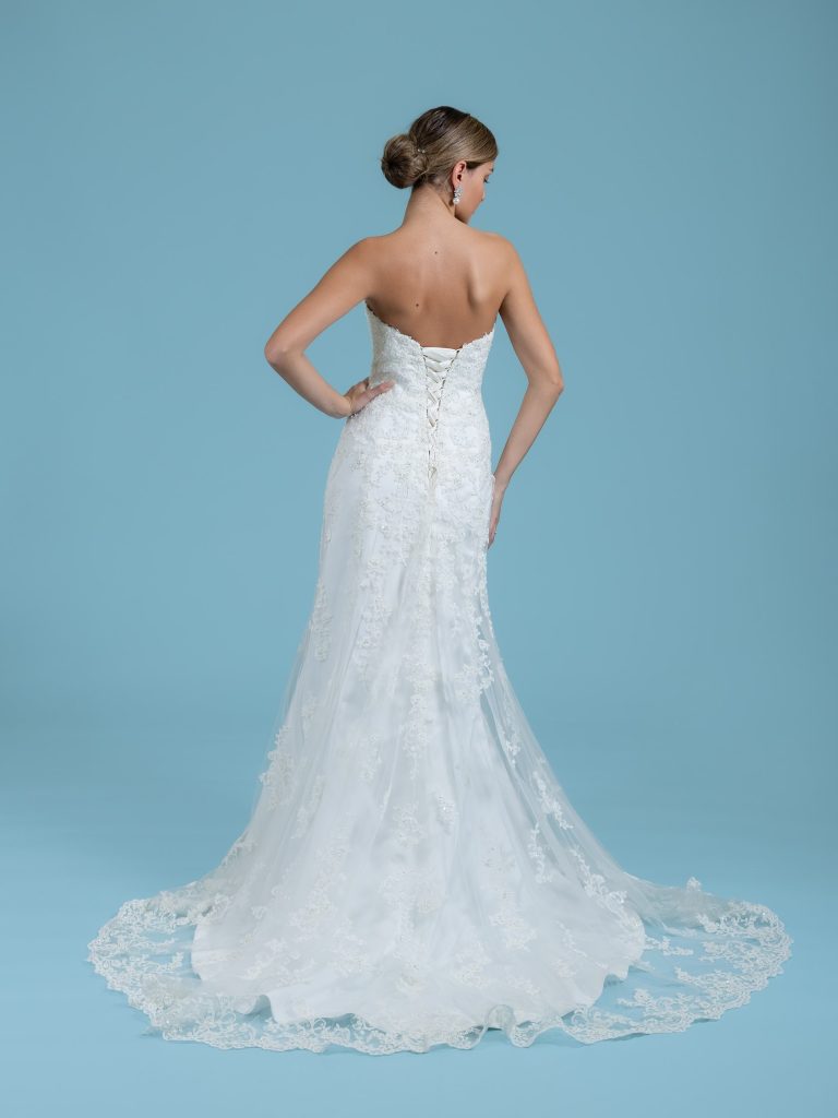 Abito da sposa decolte, stile sirena, scollatura spalle aperta e tessuto pizzo