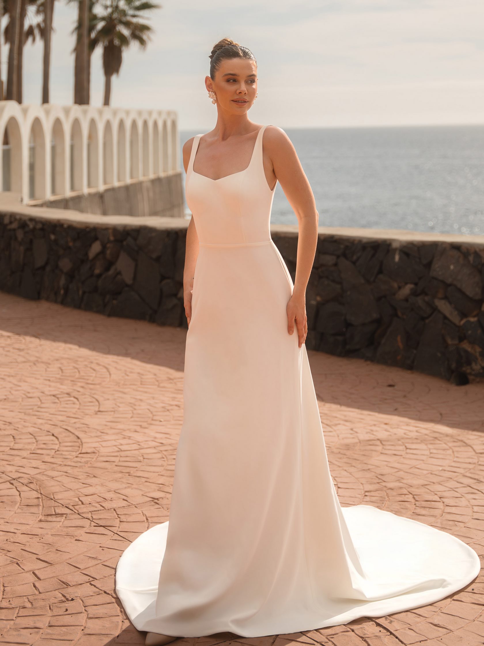 Abito da sposa bretelle, stile semplice, scollatura spalle aperta e tessuto toulle
