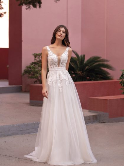 Gli abiti di questa collezione sono ideali per una sposa moderna e sensuale che non vuole rinunciare all’eleganza classica e romantica.