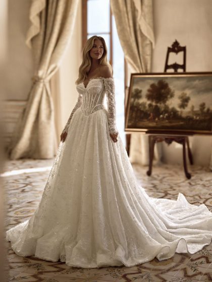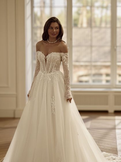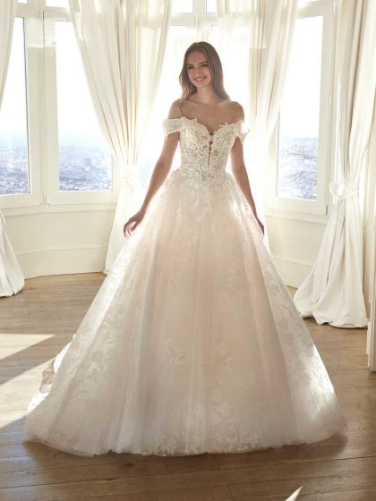 L’abito da sposa ampio, detto anche in stile principessa, è uno degli stili più apprezzati dalle sposa. Uno stile che richiama le fiabe, perfetto per tutte le silhouette ma ideale per chi ha i fianchi ampi, simbolo da sempre di fascino e bellezza. Gli abiti ampi hanno una gonna ampia a volte a strati, abbinata ad un corpetto aderente che esalta il décolleté. Un abito in stile ampio può avere spalle e braccia sia coperte che nude. Una scelta romantica per una sposa che songna un matrimonio da favola. I tessuti che danno volume alla gonna solo il pizzo, lo chiffon o il toulle. Le rifiniture sartoriali sugli abiti dei brand più prestigiosi come Pronovias, Nicole, Vera Wang e tanti altri top brand sposa.