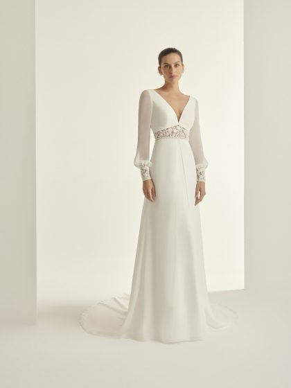Gli abiti da sposa in stile scivolato sono caratterizzati da linee morbide che cadono sul corpo senza essere troppo aderenti ma esaltando le tue forme e donando uno stile elegante alla sposa. I tessuti sono leggeri e fluenti, come lo chiffon, il toulle o l’organza, grazie alla leggerezza dei tessuti i movimenti dell’abito da sposa scivolato sono fluidi e leggeri, ben si prestano a delle foto all’area aperta piene di movimento. Un modello quello scivolato, che si adatta a tutte le fisicità ed è perfetto anche per una sposa in dolce attesa o per chi vuole un matrimonio romantico.