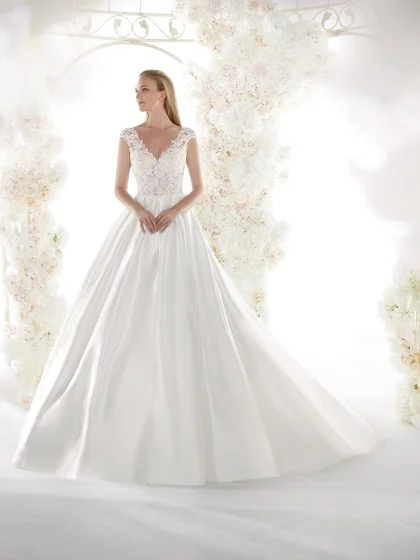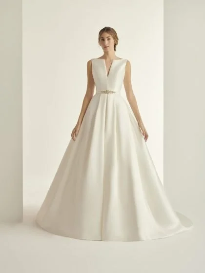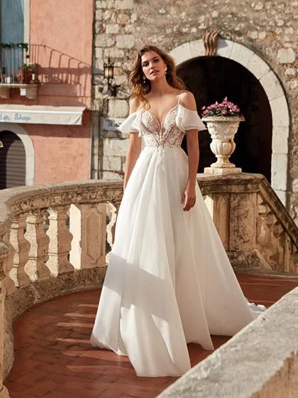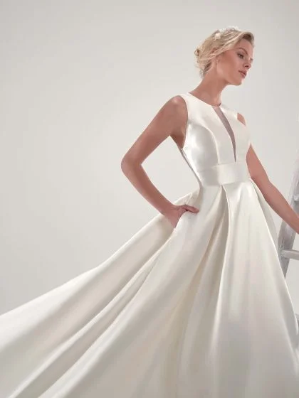 Il vestito da sposa semplice è perfetto per una ha un eleganza e un fascino senza tempo, è spesso caratterizzato da tessuti leggeri come mikado, organza, toulle o crepe. Le scollature sono raffinate, accompagnate da maniche sia lunghe che corte a volte con effetto tatto, molto amato dalle spose più romantiche.