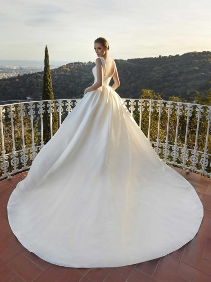 Il vestito da sposa semplice è perfetto per una ha un eleganza e un fascino senza tempo, è spesso caratterizzato da tessuti leggeri come mikado, organza, toulle o crepe. Le scollature sono raffinate, accompagnate da maniche sia lunghe che corte a volte con effetto tatto, molto amato dalle spose più romantiche.