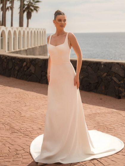 Il vestito da sposa semplice è perfetto per una ha un eleganza e un fascino senza tempo, è spesso caratterizzato da tessuti leggeri come mikado, organza, toulle o crepe. Le scollature sono raffinate, accompagnate da maniche sia lunghe che corte a volte con effetto tatto, molto amato dalle spose più romantiche.